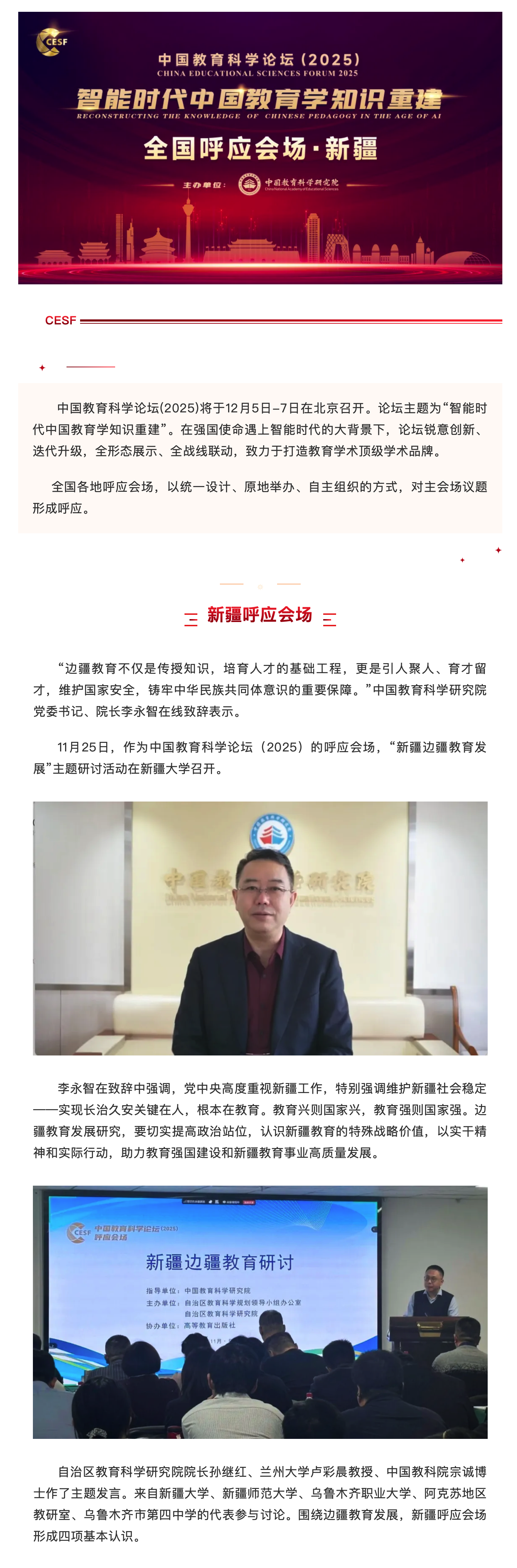 【顶会快报】中国教育科学论坛(2025)新疆呼应会场:长治久安关键在人,根本在教育